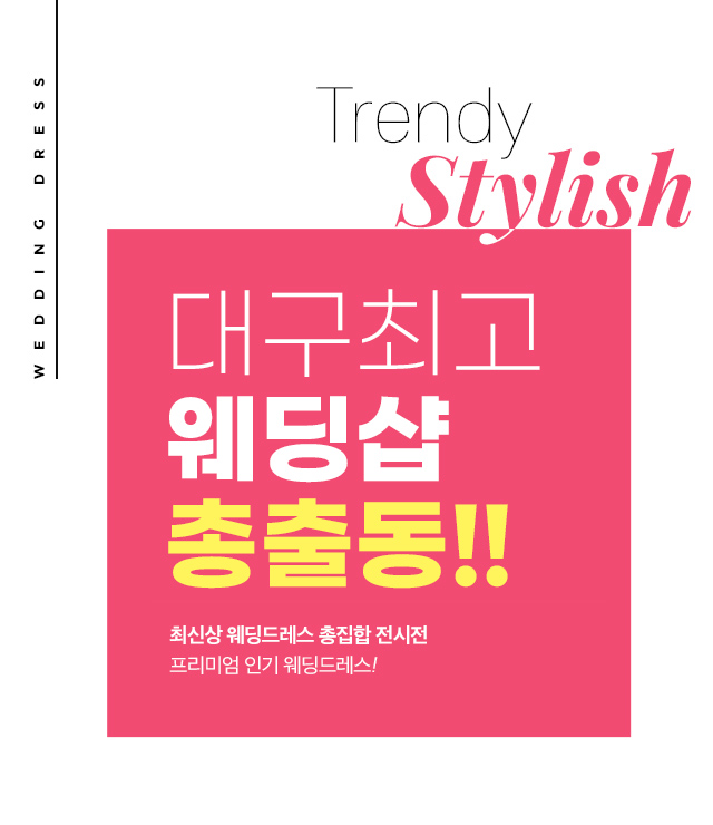 대구최고 웨딩샵들을 한번에 만날 수 있는 기회! 로즈로사, 브라이드윤슬, 석미송, 마리스포사, 소유드블랑, 리아웨딩, 아델, 끌로엔느, 레이나모라, 아이테오, 르앤커스텀 등 다양한 웨딩샵들을 한번에 만날 수 있는 기회입니다. 지금바로 최신상 웨딩드레스도 구경하시고 프리미엄 인기 웨딩드레스도 만나보세요!